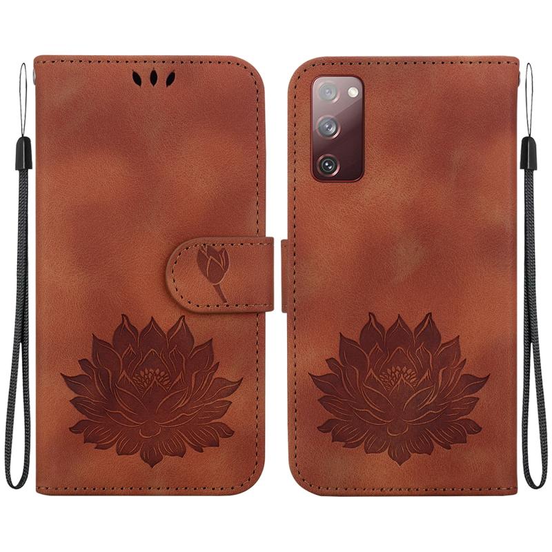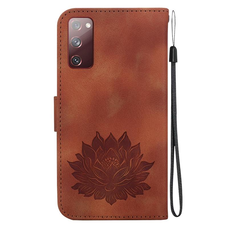 For Samsung Galaxy S20 FE 4G / 5G Lotus Embossed Leather Phone Case(Brown)