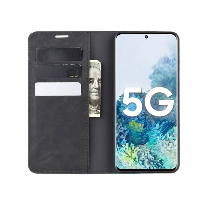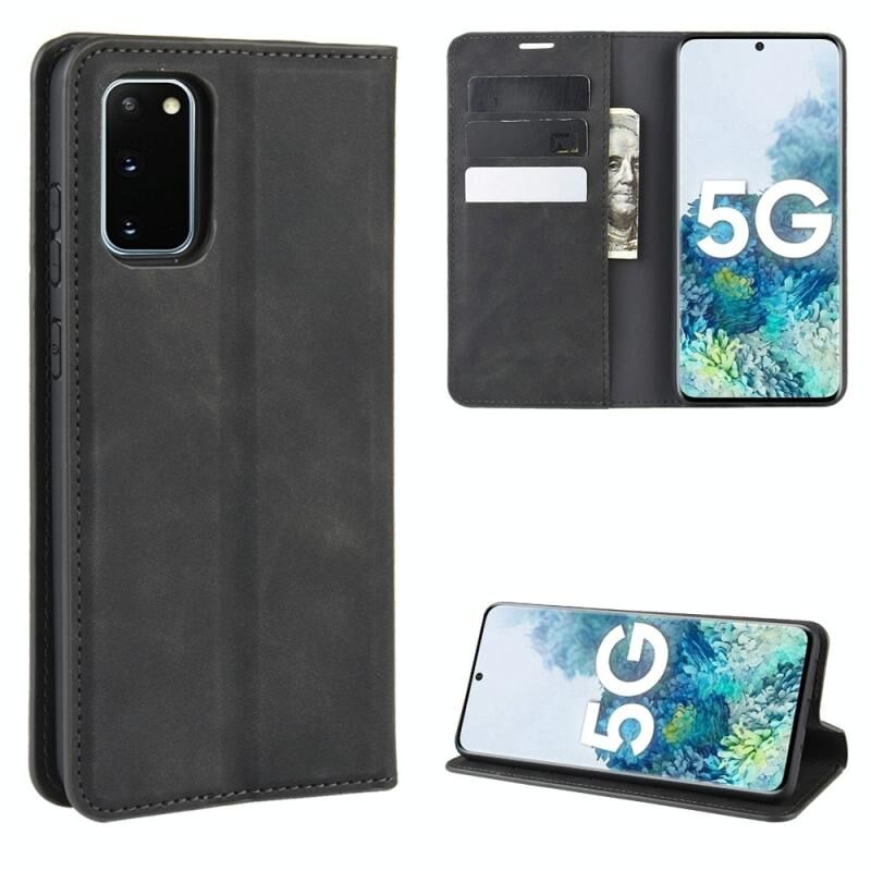 Για Samsung Galaxy S20 FE 4G / 5G Retro-skin Business Μαγνητική δερμάτινη θήκη αναρρόφησης με θήκη & υποδοχές καρτών & πορτοφόλι (Μαύρο)