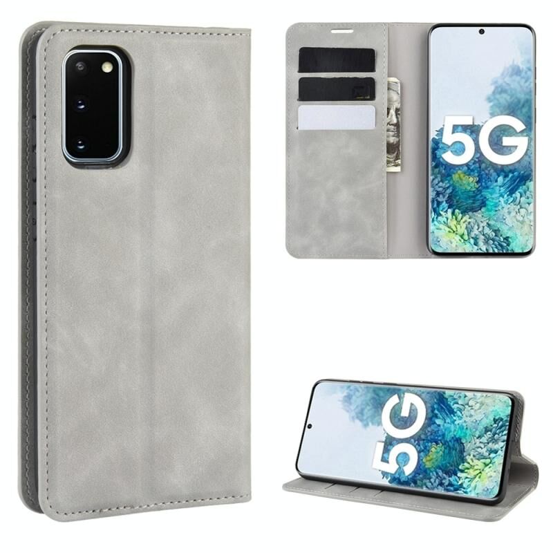 Για Samsung Galaxy S20 FE 4G / 5G Retro-skin Business Μαγνητική δερμάτινη θήκη αναρρόφησης με θήκη & υποδοχές καρτών & πορτοφόλι (γκρι)