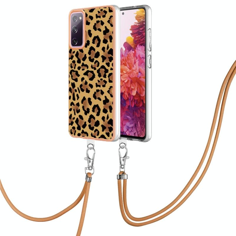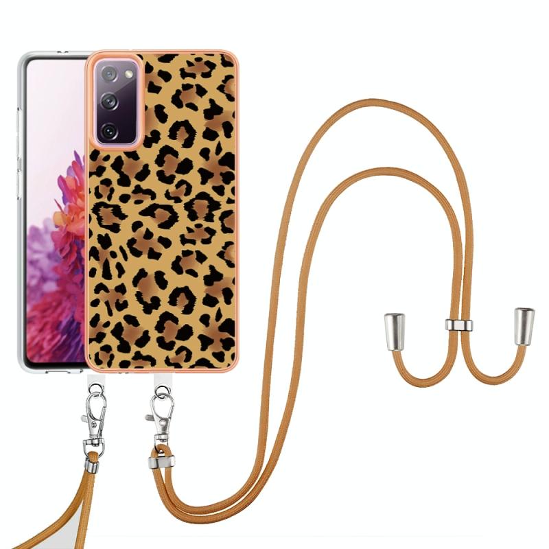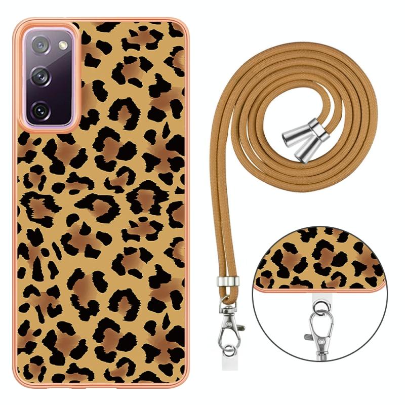 For Samsung Galaxy S20 FE 5G / 4G Electroplating Dual-side IMD Phone Case with Lanyard(Leopard Print)