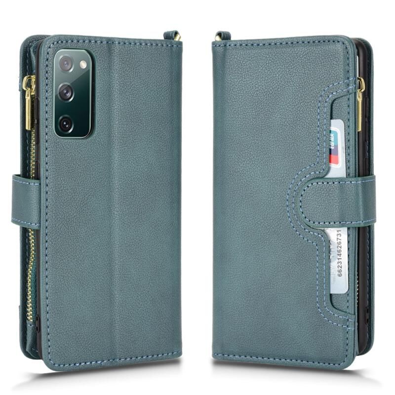 Για Samsung Galaxy S20 FE 5G / 4G Litchi Υφή φερμουάρ δερμάτινη θήκη τηλεφώνου (πράσινο)