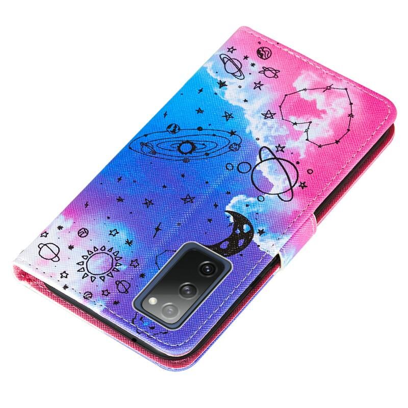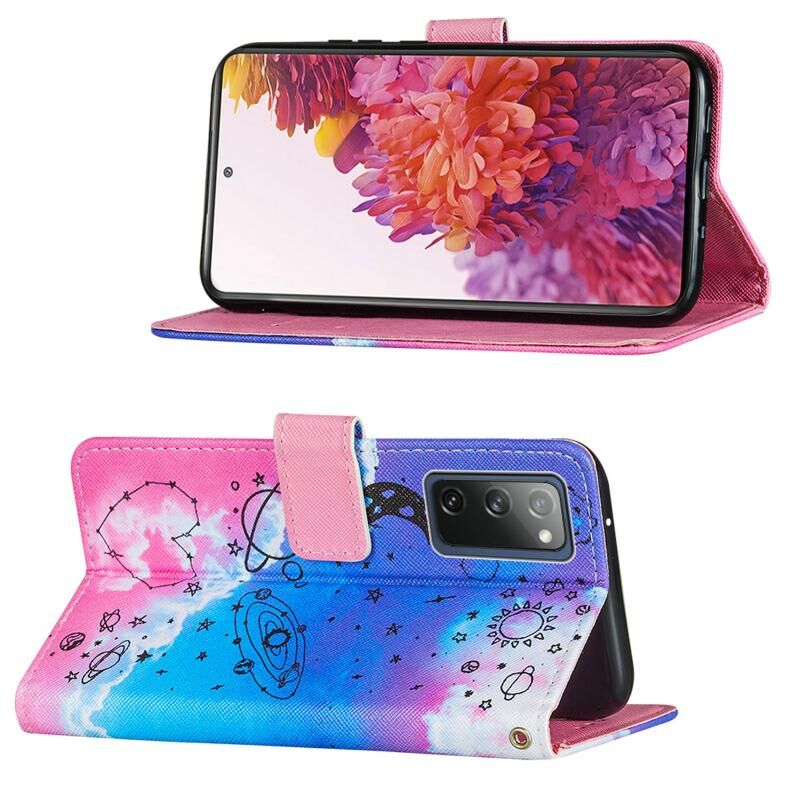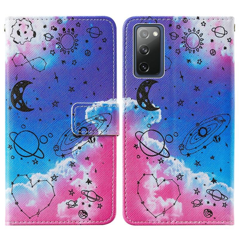 Θήκη δέρματος οριζόντιας αναδίπλωσης με σχέδιο ζωγραφικής και χρώματα για Samsung Galaxy S20 FE 5G, με βάση & υποδοχή κάρτας & κορδόνι (Love Universe)