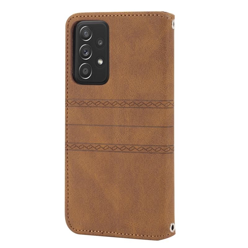 Για Samsung Galaxy S20 FE 5G ανάγλυφη ριγέ μαγνητική πόρπη PU + TPU οριζόντια Flip δερμάτινη θήκη με θήκη & υποδοχή κάρτας & πορτοφόλι & κορνίζα φωτογραφιών & σφεντόνα (καφέ)