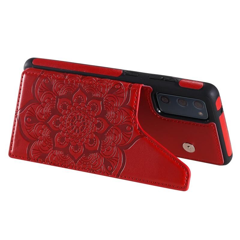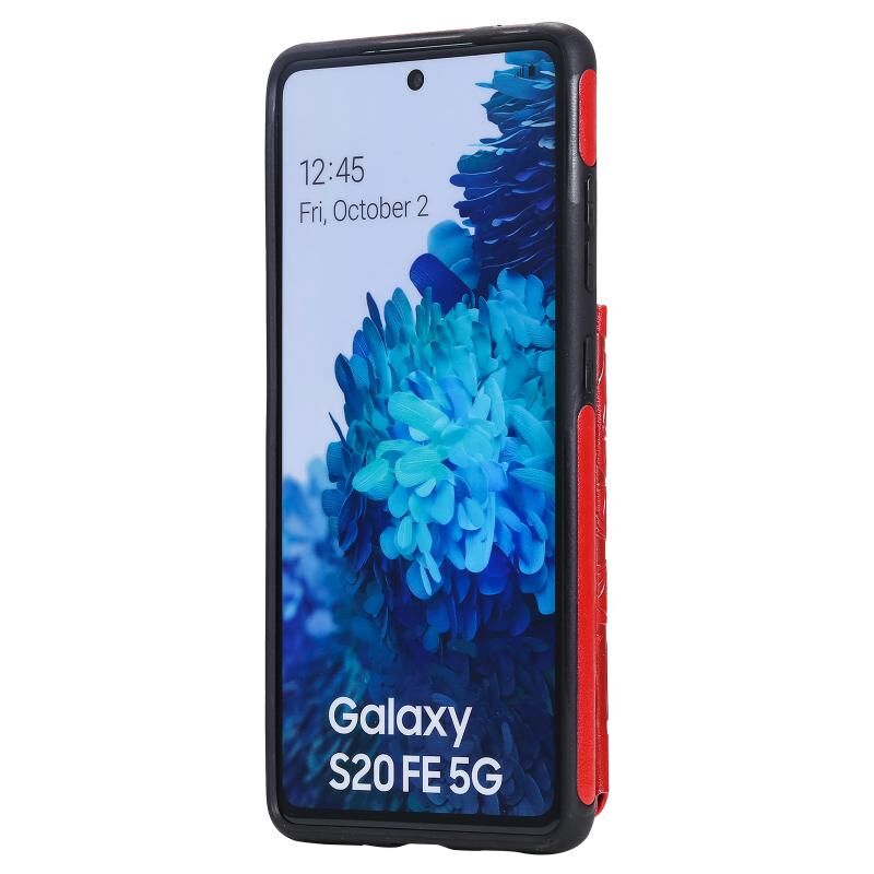 Για Samsung Galaxy S20 FE 5G λουλούδι ανάγλυφο μοτίβο Shockproof προστατευτική θήκη με θήκη & υποδοχές για κάρτες & πλαίσιο φωτογραφιών (κόκκινο)