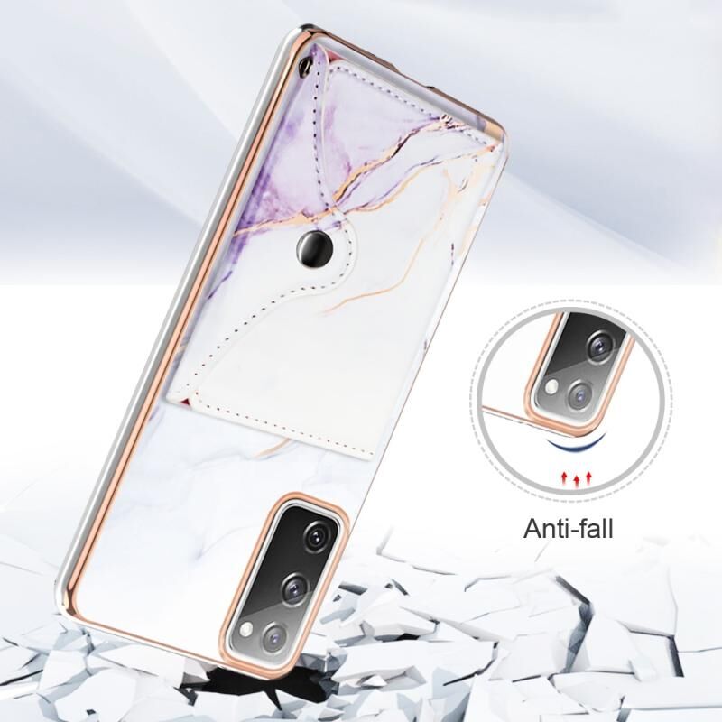 Θήκη κινητού τηλεφώνου Samsung Galaxy S20 FE 5G με σχέδιο μάρμαρου IMD και θήκη για κάρτες (White Purple)