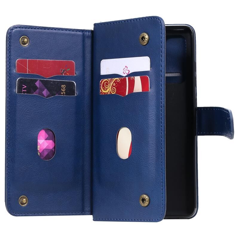 Θήκη Samsung Galaxy S20 FE 5G Πολυλειτουργική Μαγνητική με Αγκράφα από Χαλκό, Οριζόντια, Μονόχρωμη Δερμάτινη με 10 Θήκες για Κάρτες & Πορτοφόλι & Στήριξη & Φωτογραφική Κορνίζα (Σκούρο μπλε)