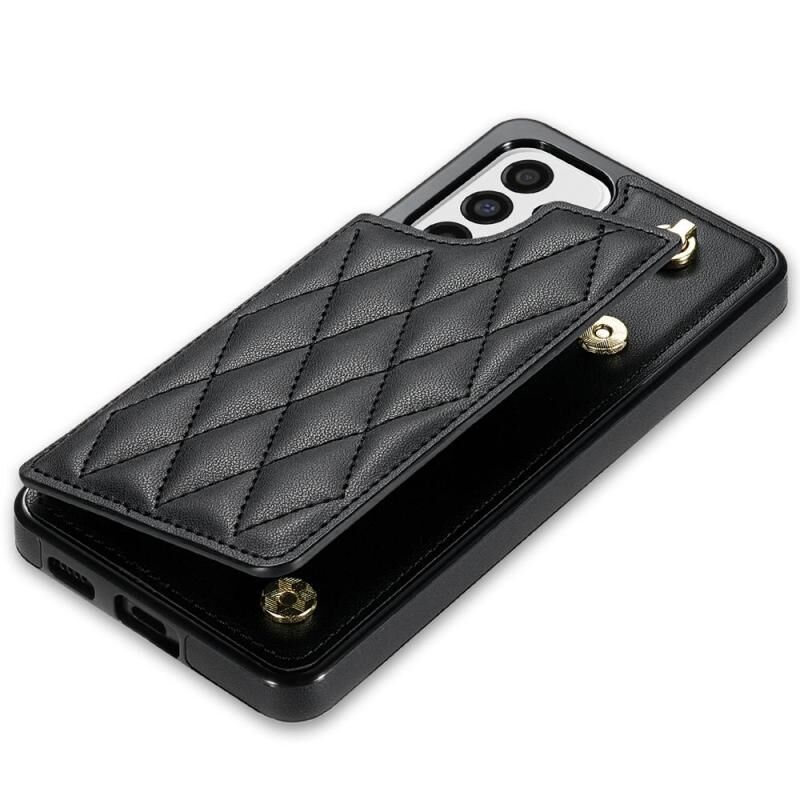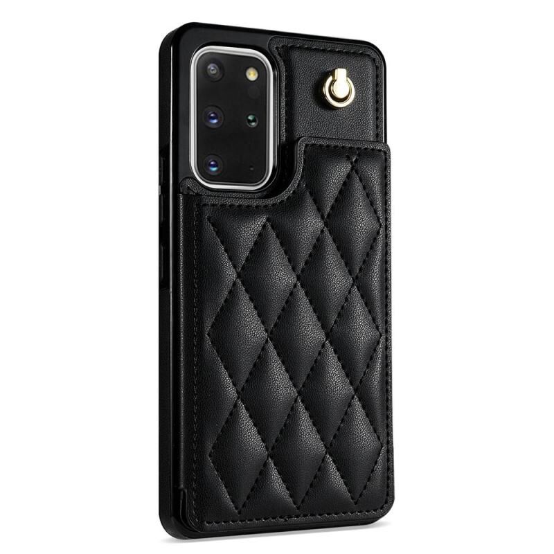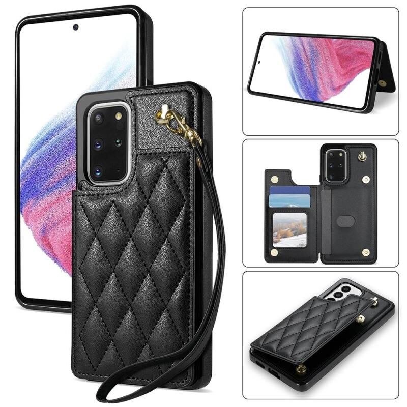 For Samsung Galaxy S20 FE 5G Rhombic Dual Buckle Card Slots Phone Case with Lanyard(Black)