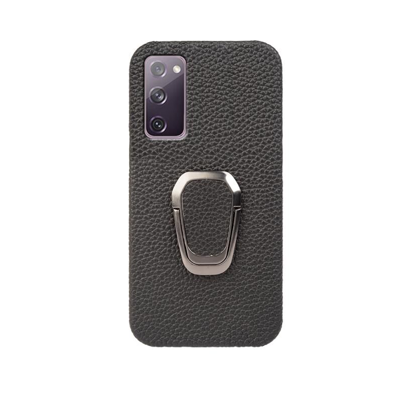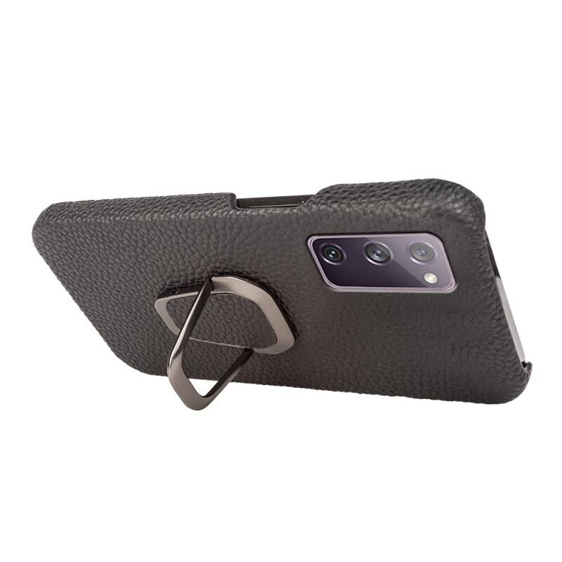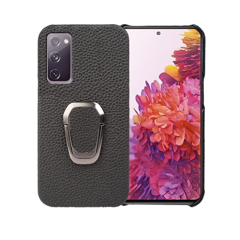 Θήκη κινητού τηλεφώνου Samsung Galaxy S20 FE 5G με δακτύλιο και γνήσιο δέρμα υφής λύτσι (Μαύρο)