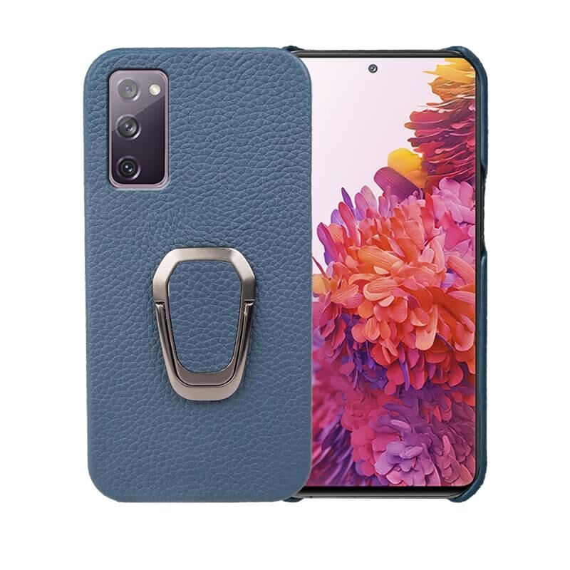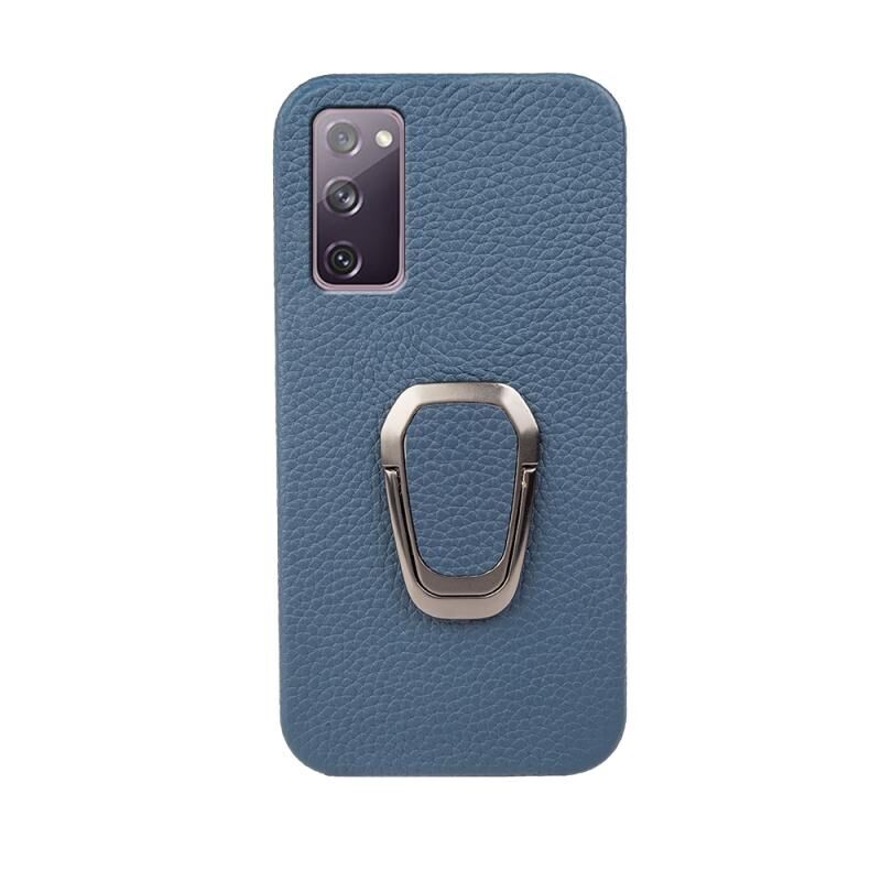Θήκη κινητού τηλεφώνου Samsung Galaxy S20 FE 5G με δακτύλιο και γνήσιο δέρμα υφής λύτσι (Μαύρο)