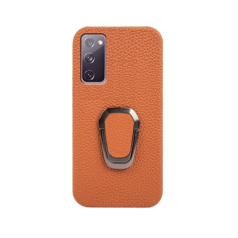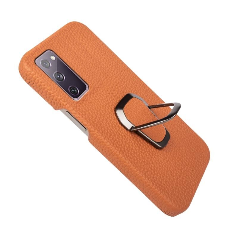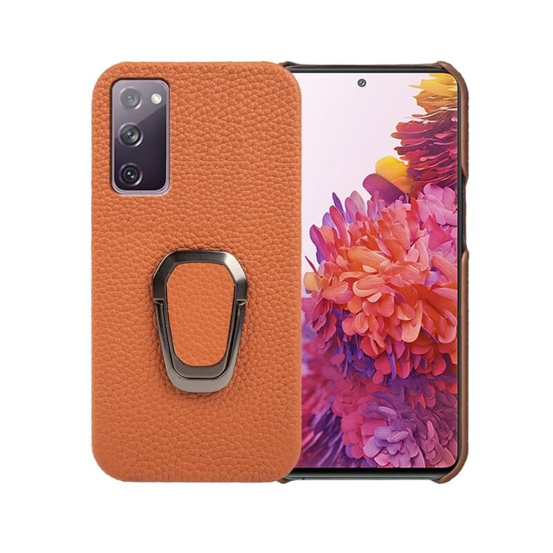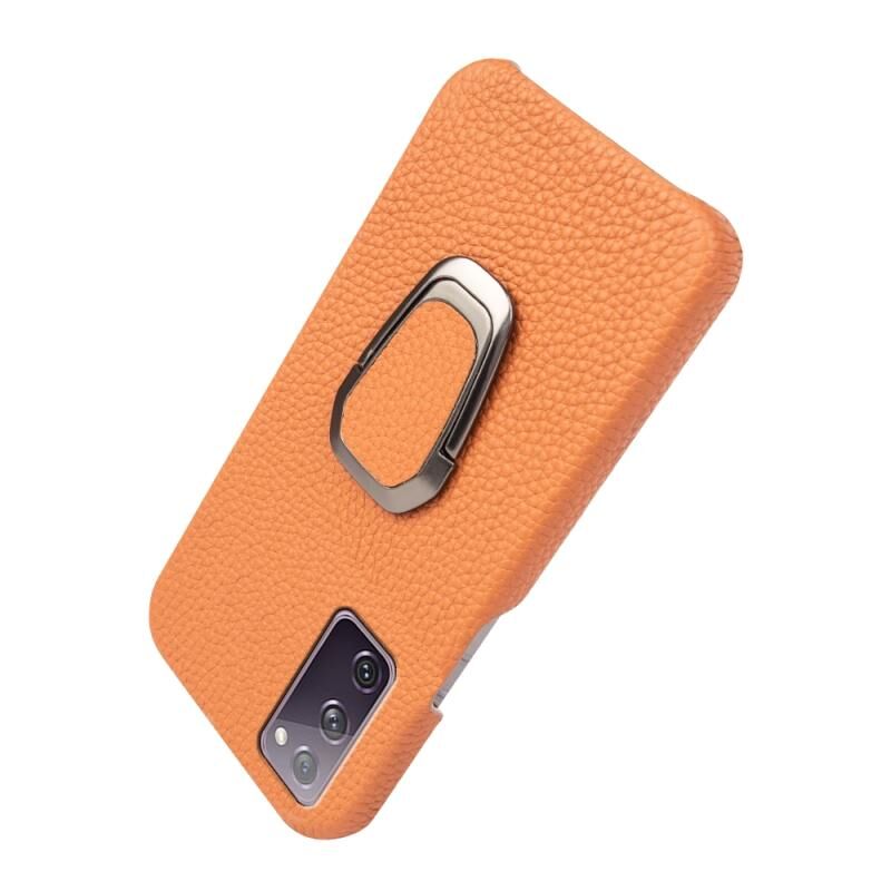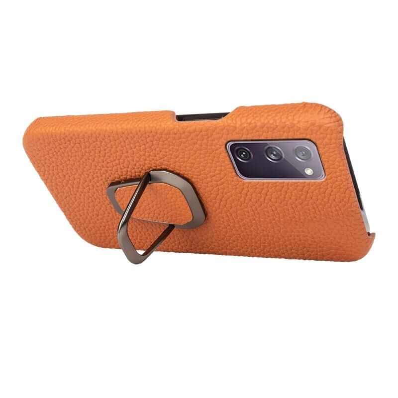 Θήκη κινητού τηλεφώνου Samsung Galaxy S20 FE 5G με δακτύλιο και γνήσιο δέρμα υφής λύτσι (Μαύρο)