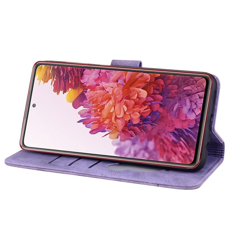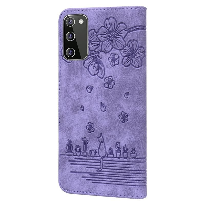 Θήκη τηλεφώνου από δέρμα με ανάγλυφο σχέδιο καρτούν Sakura Cat για Samsung Galaxy S20 FE 5G / S20 FE (Βασιλικό Μπλε)