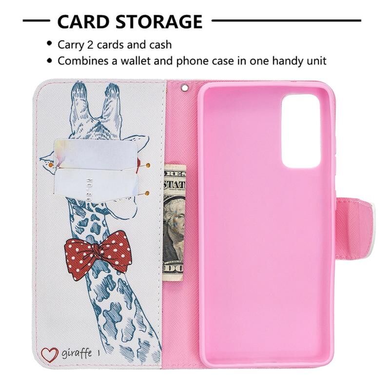 Θήκη δέρματος οριζόντιας αναδίπλωσης με σχέδιο πολύχρωμης ζωγραφικής για Samsung Galaxy S20 FE 5G / S20 Lite με βάση στήριξης & υποδοχές καρτών & πορτοφόλι (Καμηλοπάρδαλη)