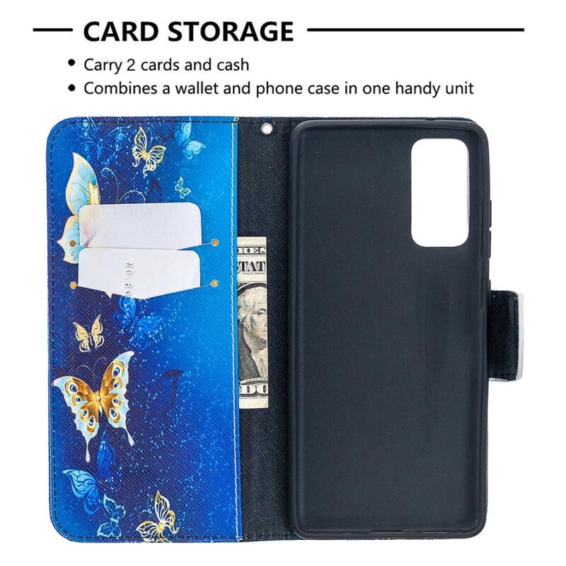 Θήκη δέρματος οριζόντιας αναδίπλωσης με σχέδιο πολύχρωμης ζωγραφικής για Samsung Galaxy S20 FE 5G / S20 Lite με βάση στήριξης & υποδοχές καρτών & πορτοφόλι (Μωβ Πεταλούδα)