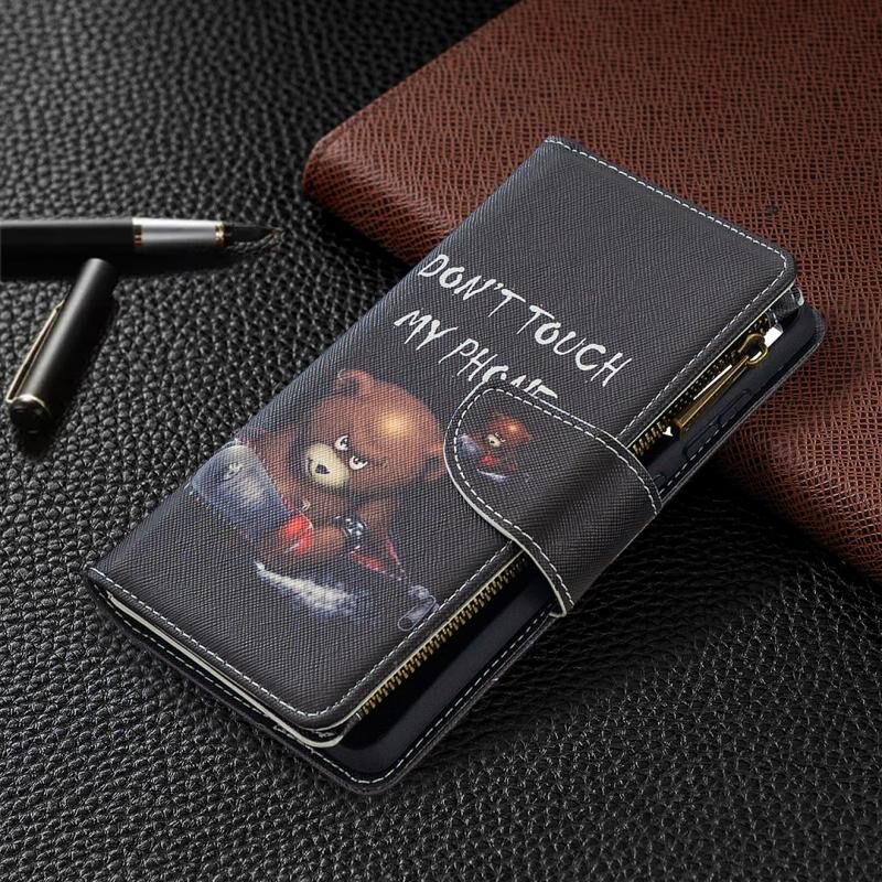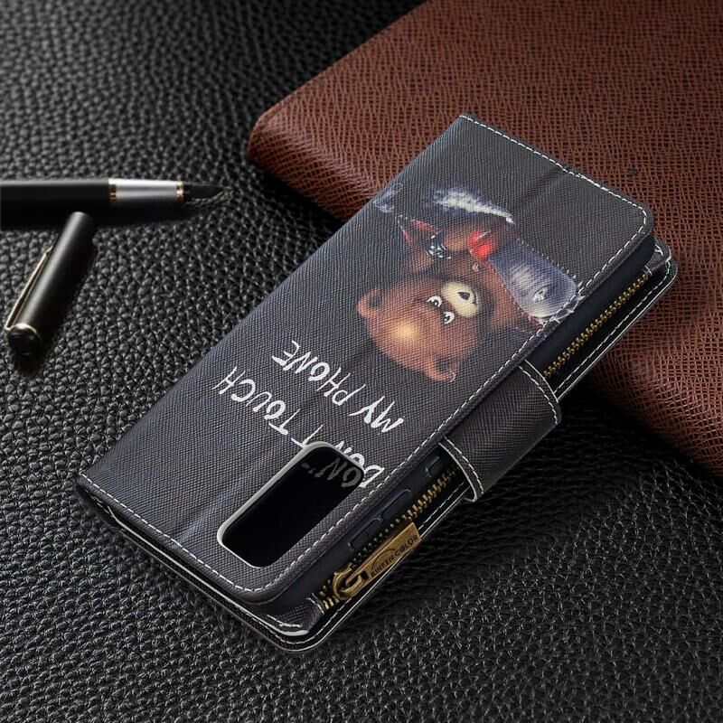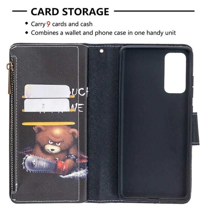 Θήκη δέρματος οριζόντιας αναδίπλωσης με φερμουάρ και σχέδιο πολύχρωμης ζωγραφικής για Samsung Galaxy S20 FE 5G / S20 Lite με βάση για κάρτες & θήκη πορτοφολιού (Αρκούδα)