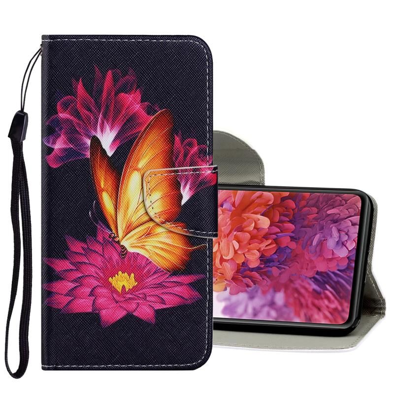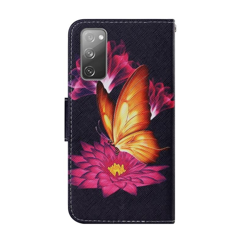 Θήκη Samsung Galaxy S20 FE 5G / S20 Lite με σχέδιο πολύχρωμης ζωγραφικής, οριζόντια, από δερματίνη PU με βάση για στήριξη & θήκες για κάρτες & πορτοφόλι & κορδόνι (Μεγάλη Χρυσή Πεταλούδα)