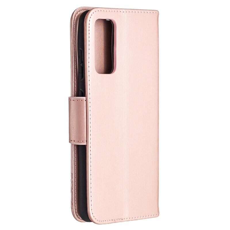Θήκη Samsung Galaxy S20 FE 5G / S20 Lite με ανάγλυφο σχέδιο δύο πεταλούδων, οριζόντια, από δερματίνη PU με βάση στήριξης, θήκη για κάρτες, πορτοφόλι & λουρί (Χρυσό)