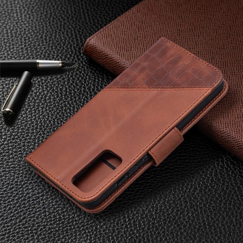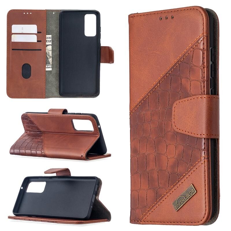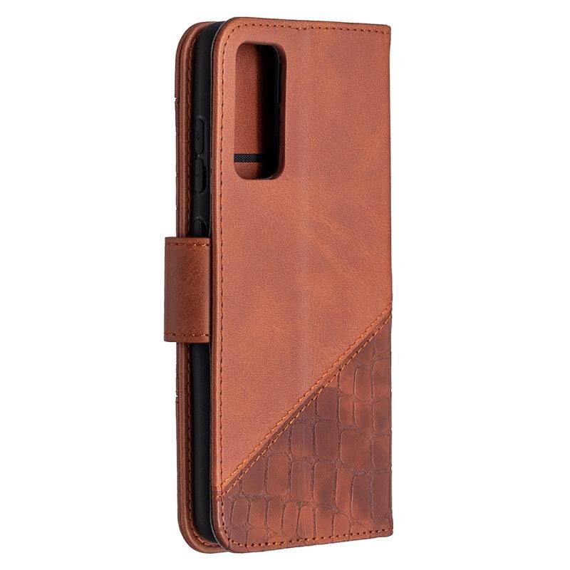 Θήκη οριζόντιας αναδίπλωσης από δερματίνη PU με υφή κροκόδειλου, σε ταιριαστό χρώμα για Samsung Galaxy S20 FE 5G / S20 Lite, με πορτοφόλι, βάση & θήκες για κάρτες (Καφέ)