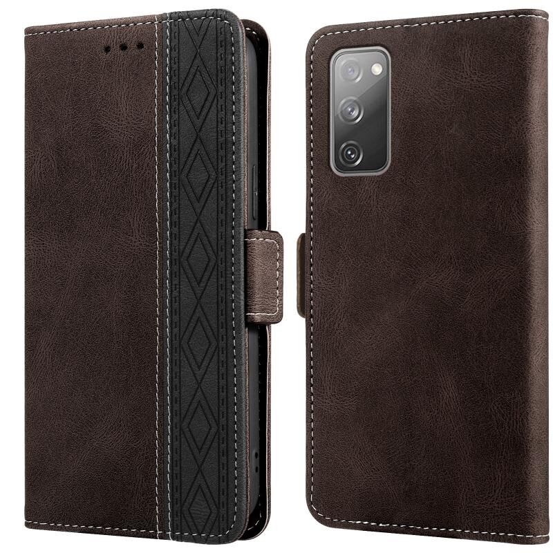 Για Samsung Galaxy S20 FE 5G ραφή Side-Magnetic RFID δερμάτινη θήκη τηλεφώνου (Καφές)