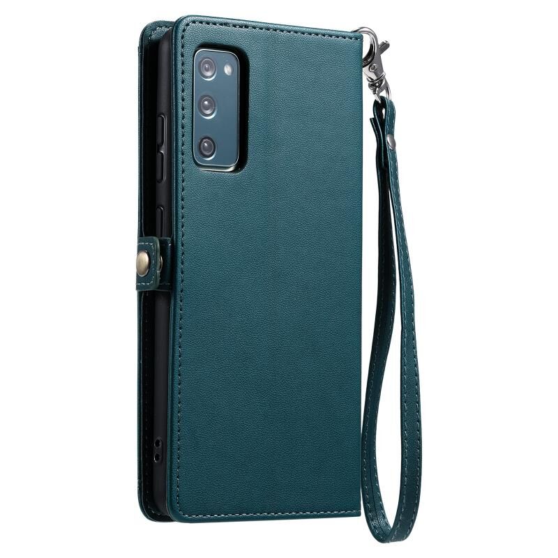 For Samsung Galaxy S20 FE 5G Wallet Multi-card Slot Leather Phone Case with Lanyard(Green)