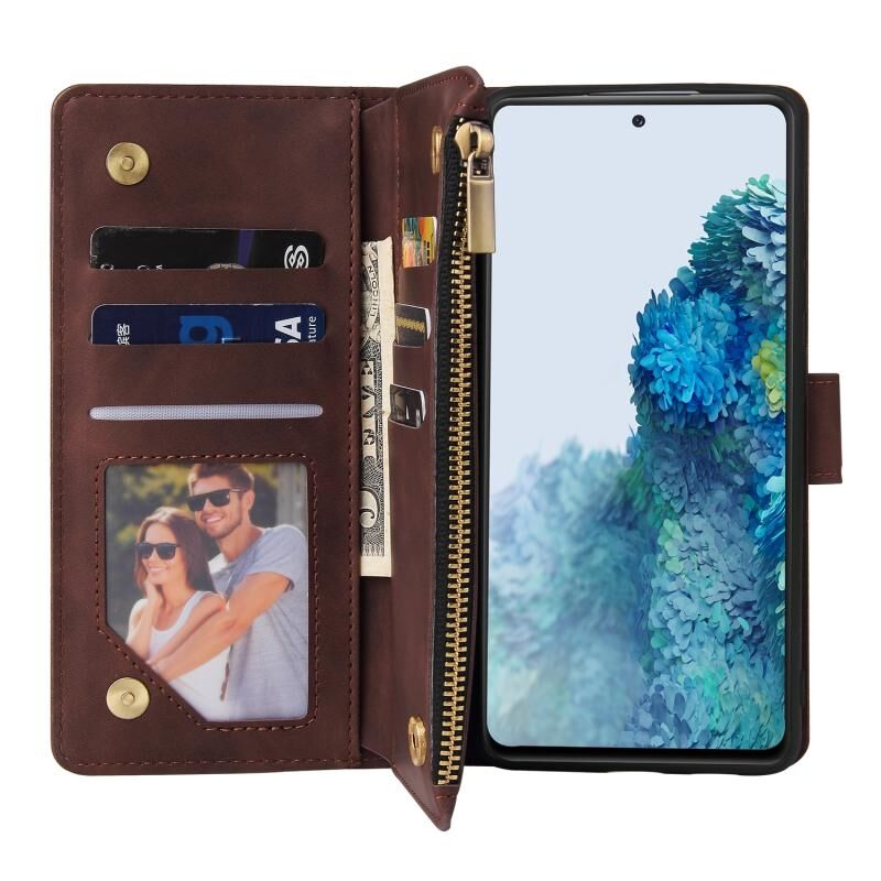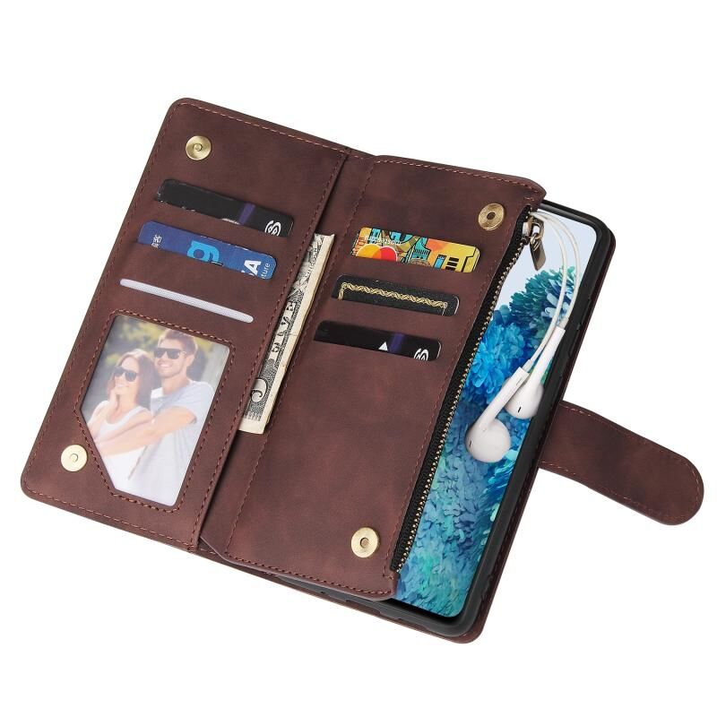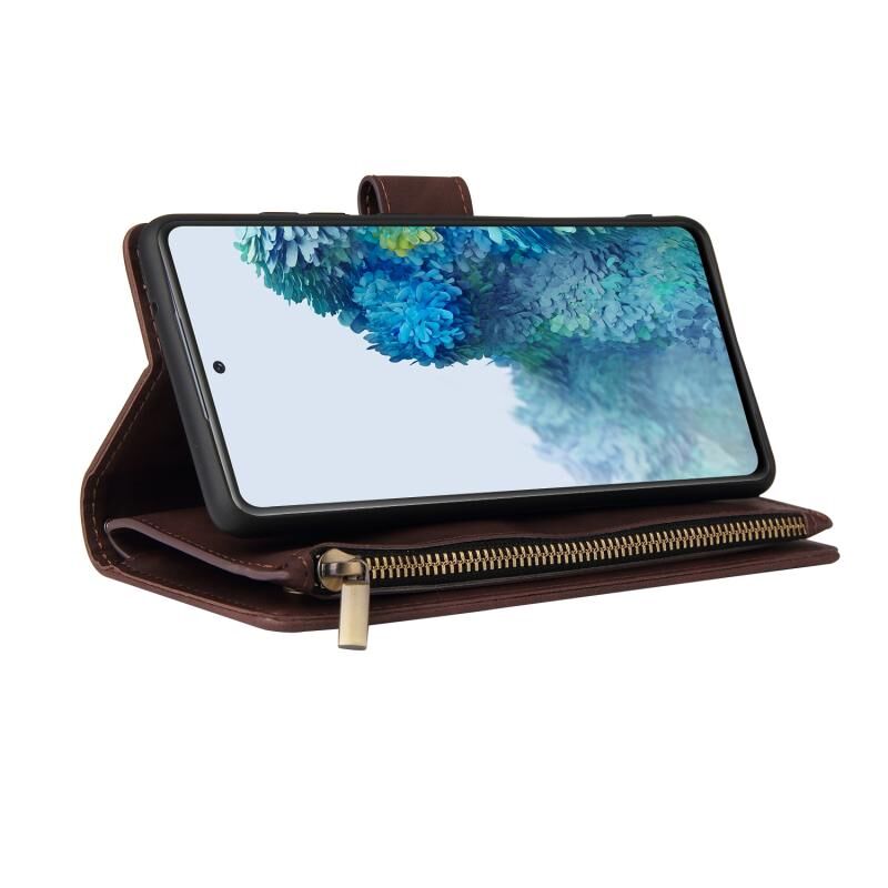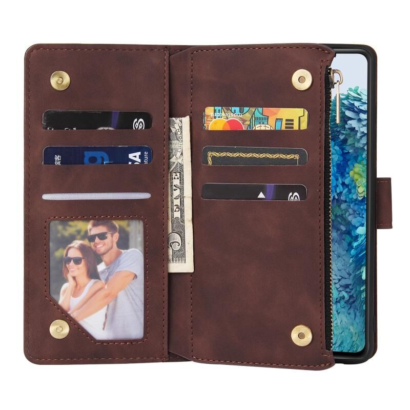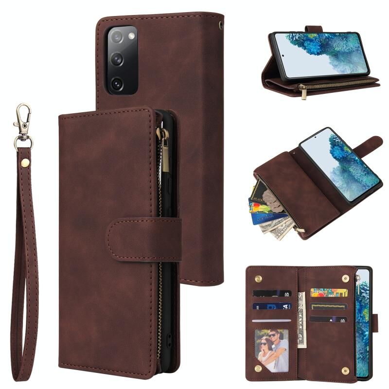 Για Samsung Galaxy S20 FE 5G φερμουάρ τσάντα πορτοφόλι οριζόντια Flip PU δερμάτινη θήκη με κάτοχο & 9 υποδοχές για κάρτες & πορτοφόλι & κορδόνι & κορνίζα & κορνίζα φωτογραφιών (Καφές)