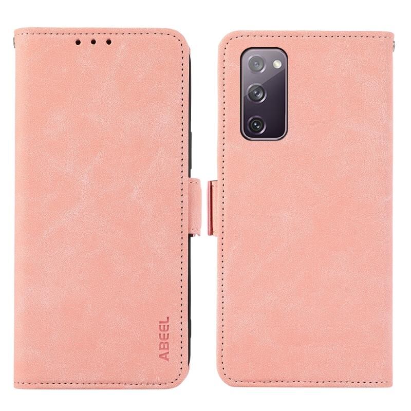 Θήκη κινητού τηλεφώνου Samsung Galaxy S20 FE ABEEL παγωμένη μαγνητική δερμάτινη με προστασία RFID (Ροζ)