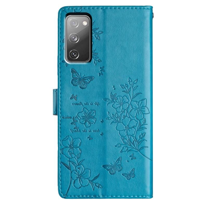 For Samsung Galaxy S20 FE Butterflies and Flowers Leather Phone Case(Blue)