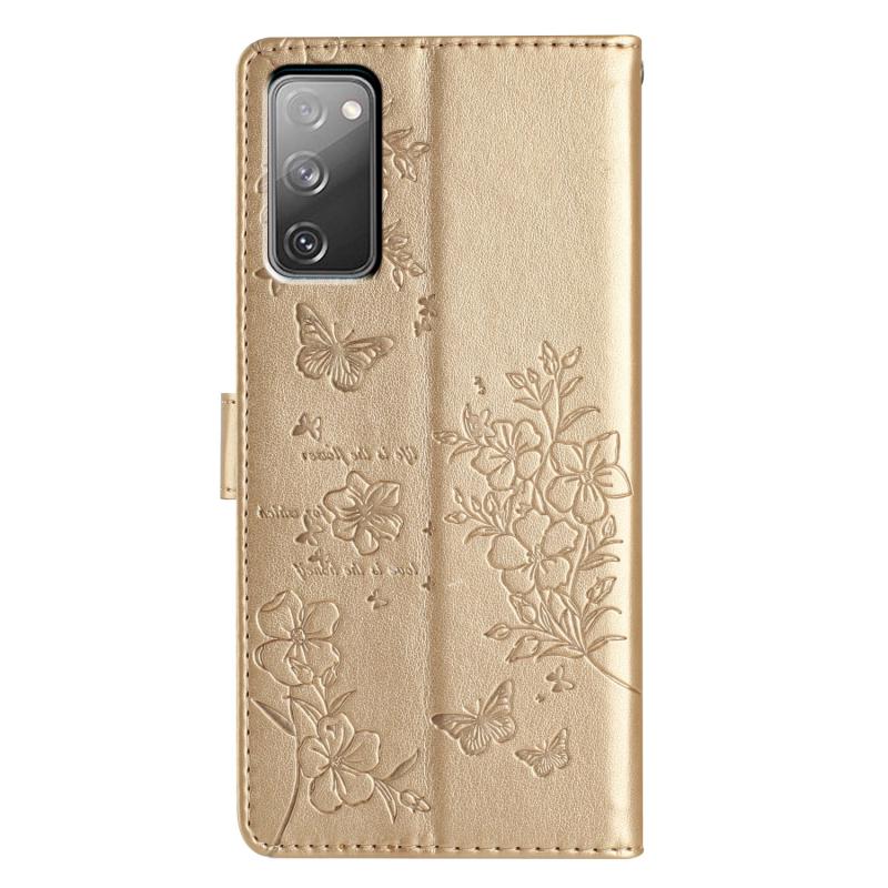 For Samsung Galaxy S20 FE Butterflies and Flowers Leather Phone Case(Gold)