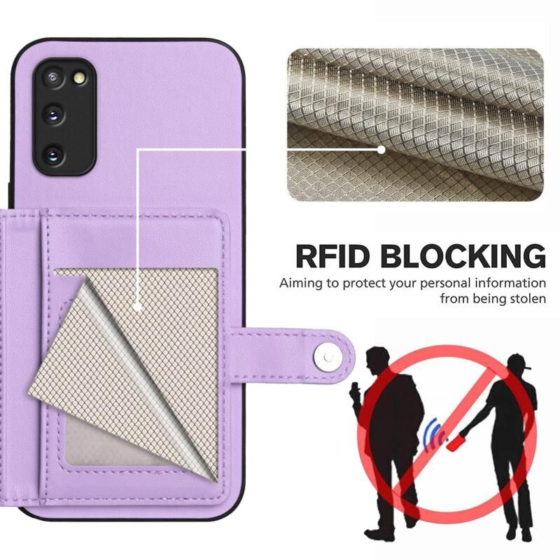 For Samsung Galaxy S20 FE Button Card Bag RFID Anti-theft Phone Case(Purple)