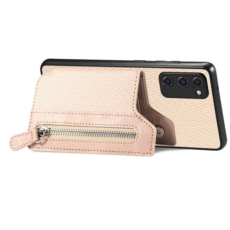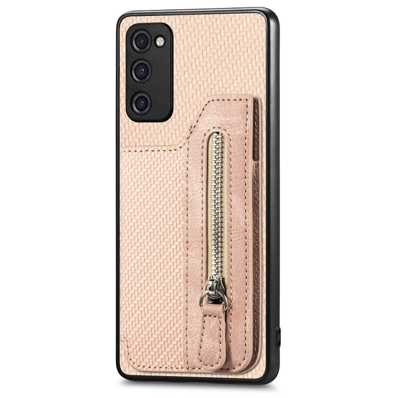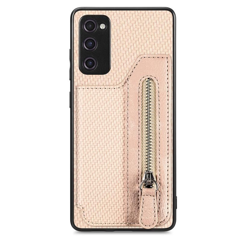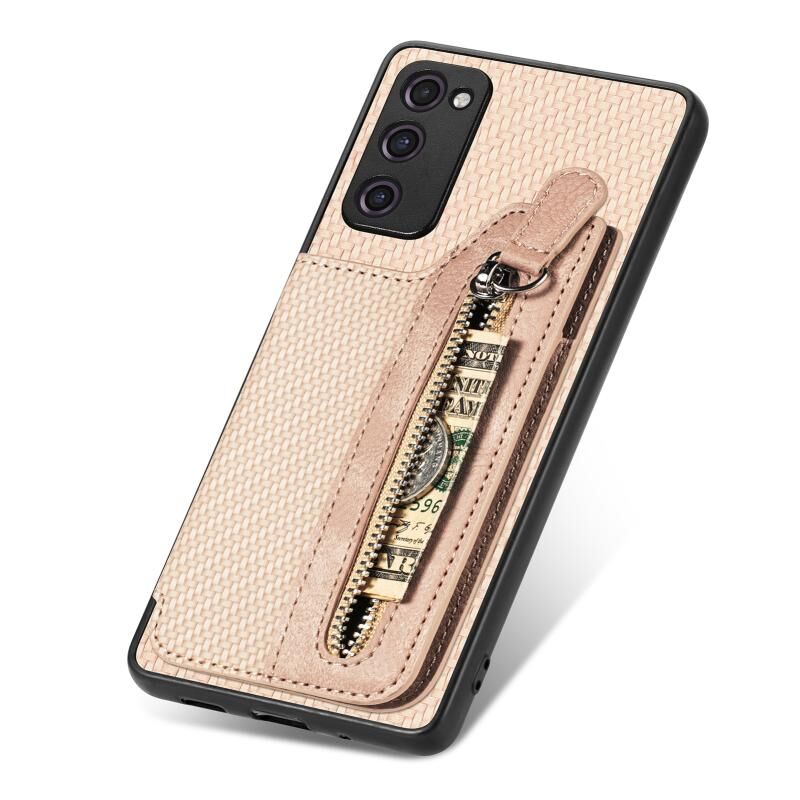Για Samsung Galaxy S20 FE Carbon Fiber Οριζόντια Flip φερμουάρ πορτοφόλι τηλέφωνο υπόθεση (χακί)