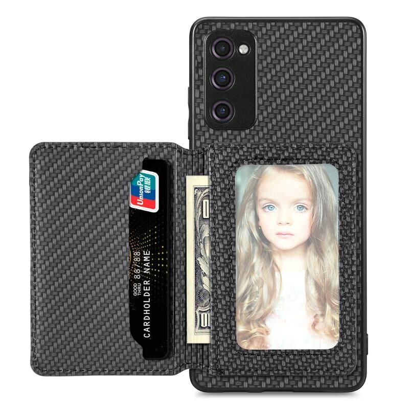 Για Samsung Galaxy S20 FE Carbon Fiber Μαγνητική κάρτα πορτοφόλι τσάντα θήκη τηλεφώνου (μαύρο)