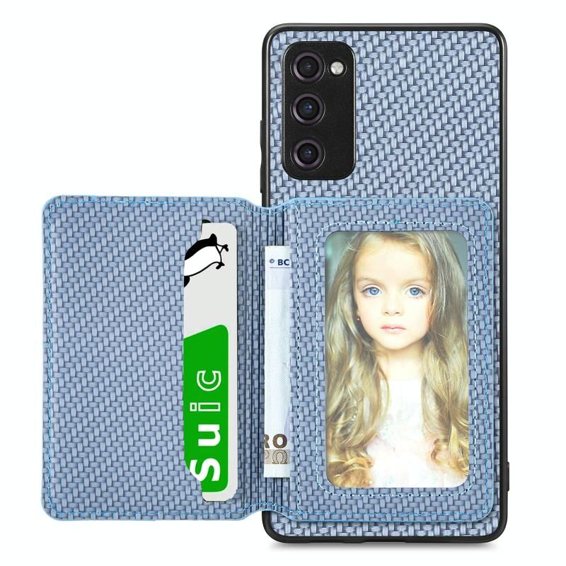 Για Samsung Galaxy S20 FE Carbon Fiber Μαγνητική κάρτα πορτοφόλι τσάντα θήκη τηλεφώνου (μπλε)