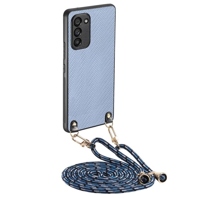 Για Samsung Galaxy S20 FE Carbon Fiber Texture δέρμα πίσω κάλυμμα τηλέφωνο υπόθεση με λουράκι σταυρού (μπλε)