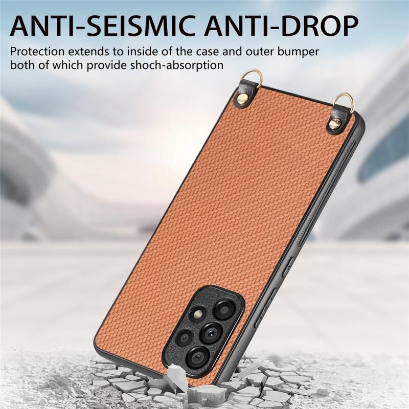 Για Samsung Galaxy S20 FE Carbon Fiber Texture δέρμα πίσω κάλυμμα υπόθεση τηλεφώνου με λουράκι σταυρού (καφέ)