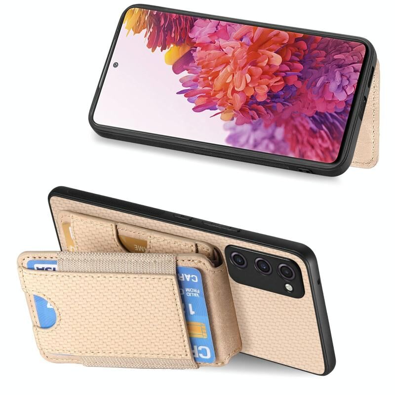 Για Samsung Galaxy S20 FE Carbon Fiber Κάθετη Flip Wallet Stand υπόθεση τηλεφώνου (χακί)