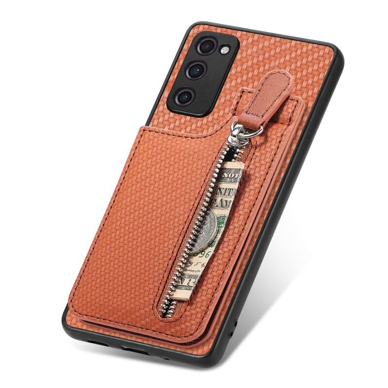 Για Samsung Galaxy S20 FE Carbon Fiber Κάθετη Flip φερμουάρ πορτοφόλι τηλέφωνο υπόθεση (καφέ)