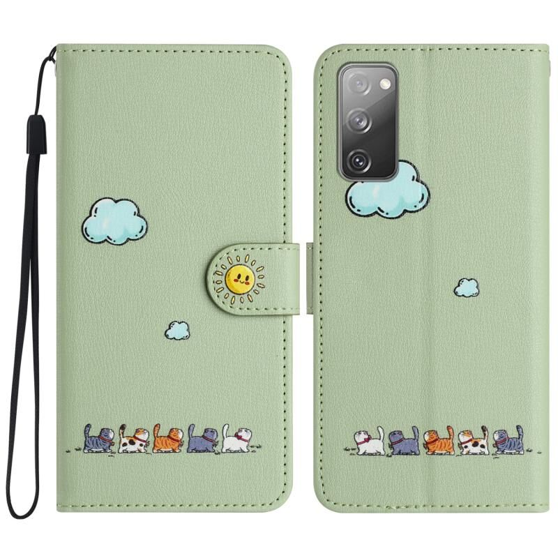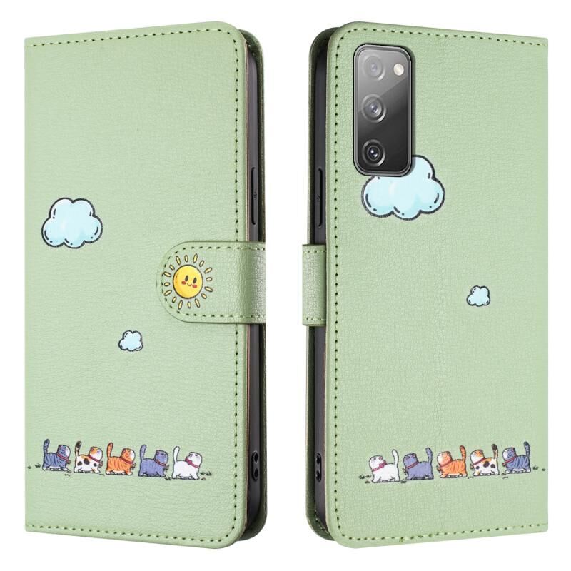 Θήκη τηλεφώνου Samsung Galaxy S20 FE από δέρμα με σχέδια χαριτωμένων γατών (Μπλε)