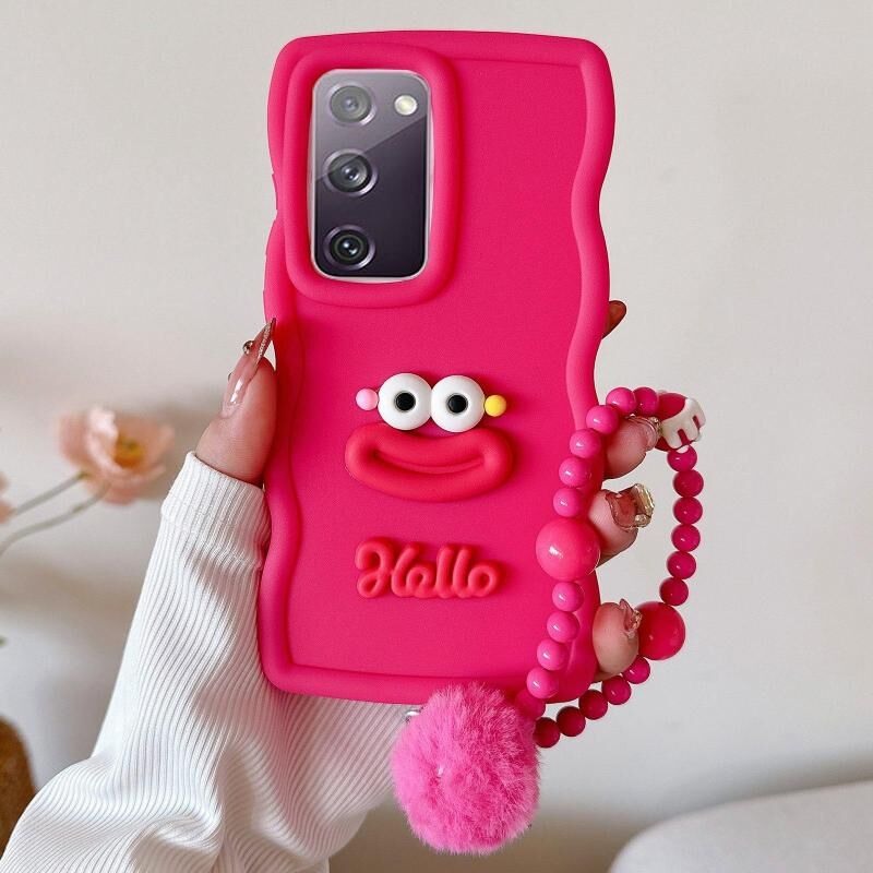 For Samsung Galaxy S20 FE Cartoon Sausage Mouth TPU Phone Case with Bead Chain(Red)