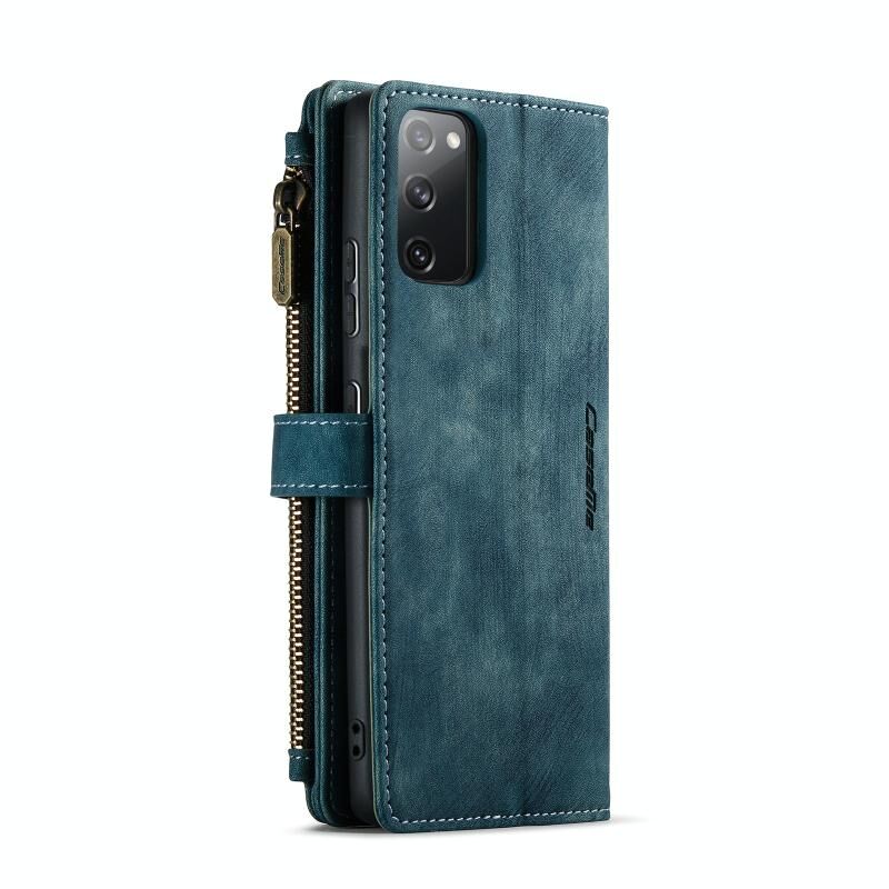 Θήκη για Samsung Galaxy S20 FE CaseMe-C30 PU + TPU Πολυλειτουργική Οριζόντια Δερμάτινη Θήκη με Στήριξη & Θήκη Καρτών & Πορτοφόλι & Τσέπη με Φερμουάρ (Μπλε) (CaseMe)
