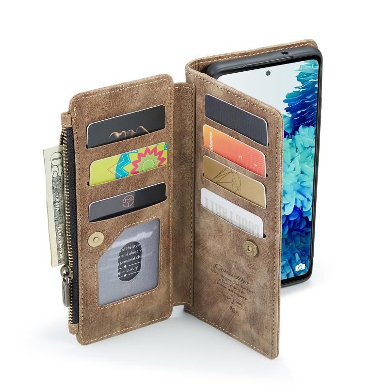 For Samsung Galaxy S20 FE CaseMe-C30 PU + TPU Multifunctional Horizontal Flip Leather Case with Holder & Card Slot & Wallet & Zipper Pocket(Brown) (CaseMe)