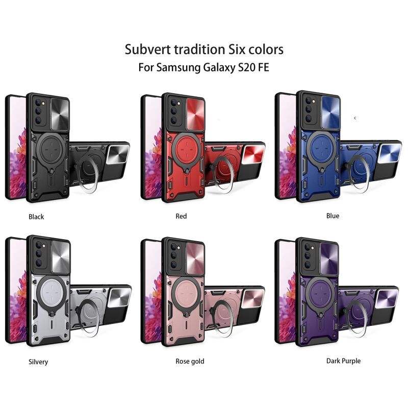 Θήκη κινητού τηλεφώνου για Samsung Galaxy S20 FE με υφή CD, συρόμενο προστατευτικό κάμερας και μαγνητική βάση (Ροζ)