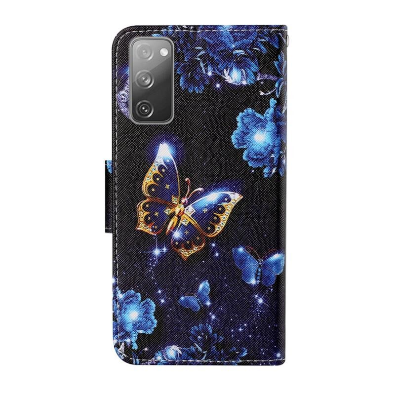 Θήκη δέρματος οριζόντιας αναδίπλωσης με σχέδιο πολύχρωμης ζωγραφικής για Samsung Galaxy S20 FE με βάση στήριξης & υποδοχές καρτών & πορτοφόλι & κορδόνι (Πεταλούδα Σελήνης)