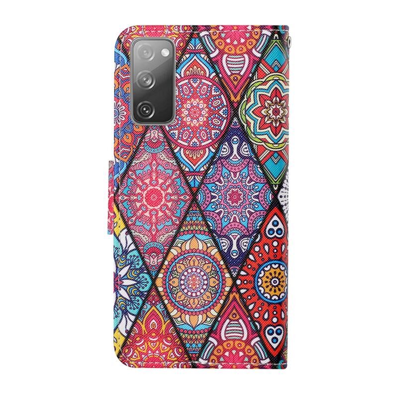 Θήκη δέρματος οριζόντιας αναδίπλωσης με σχέδιο πολύχρωμης ζωγραφικής για Samsung Galaxy S20 FE με βάση στήριξης & υποδοχές καρτών & πορτοφόλι & κορδόνι (Ρόμβος Τότεμ)