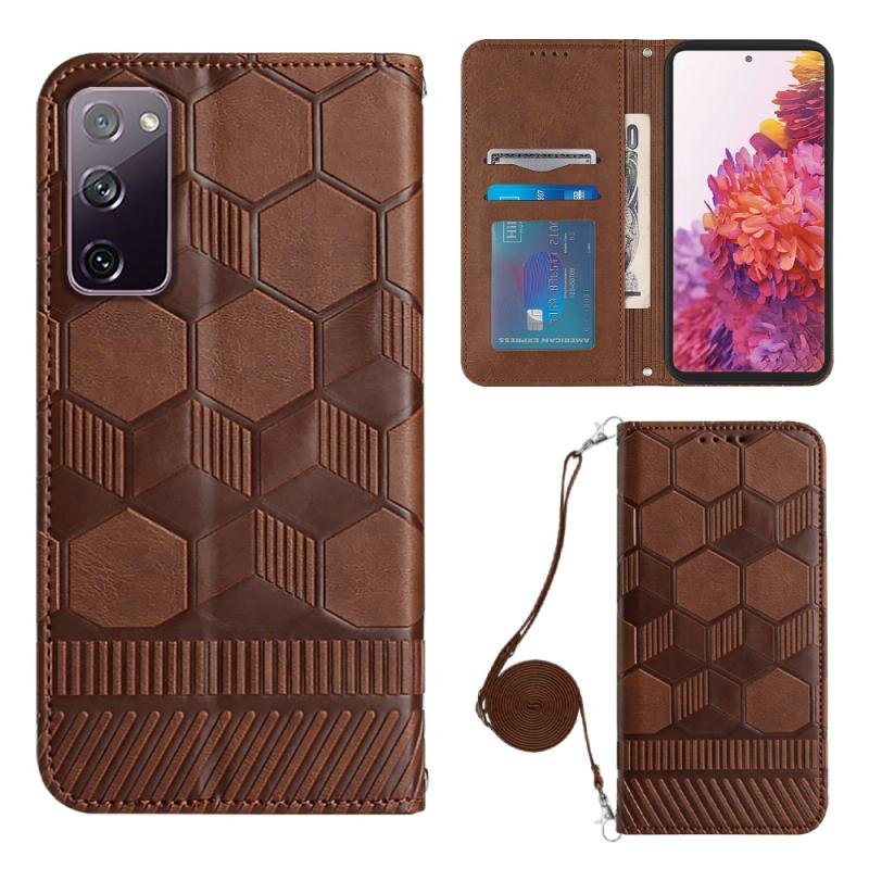 Θήκη κινητού Samsung Galaxy S20 FE, διαγώνια, με υφή ποδοσφαίρου, μαγνητική, από PU δέρμα (Καφέ)