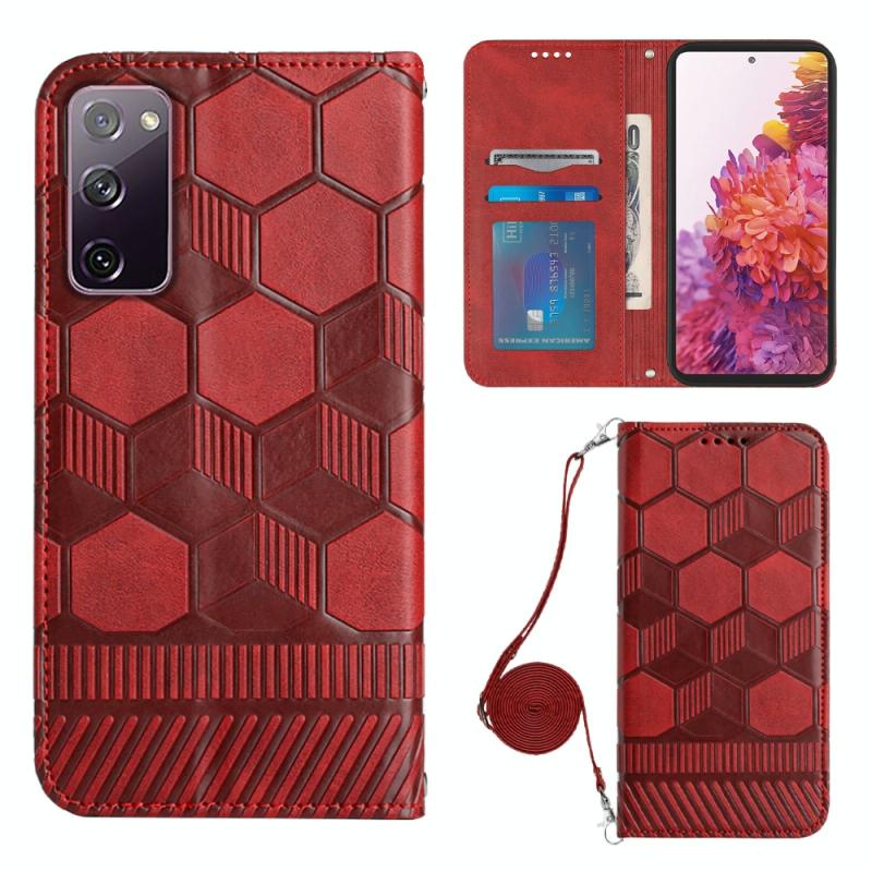 Θήκη κινητού Samsung Galaxy S20 FE, διαγώνια, με υφή ποδοσφαίρου, μαγνητική, από PU δέρμα (Κόκκινο)