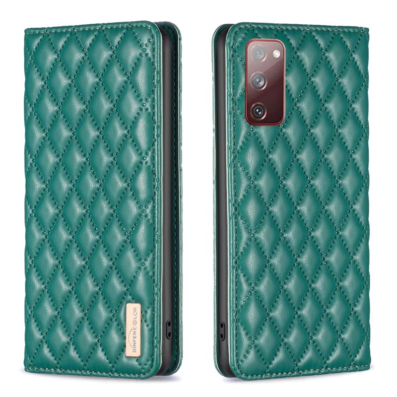 Θήκη Samsung Galaxy S20 FE Diamond Lattice Magnetic Leather Flip (πράσινο)