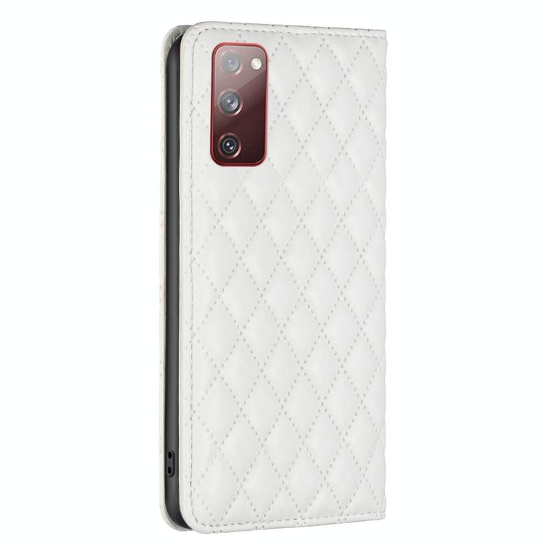 Θήκη Samsung Galaxy S20 FE Diamond Lattice Magnetic Leather Flip (Λευκό)