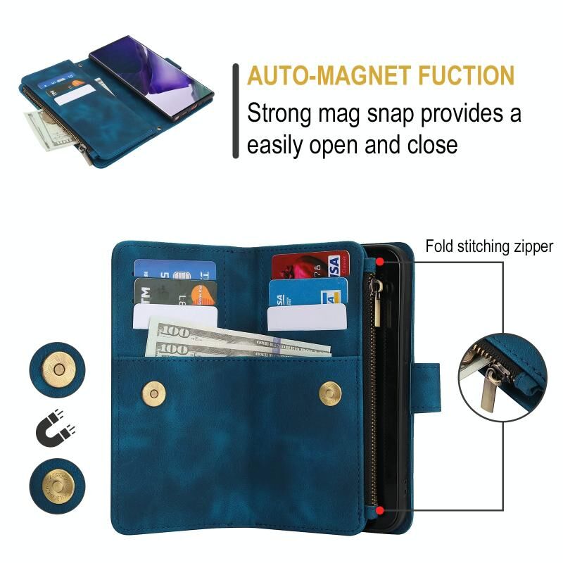 2. Λειτουργία πορτοφολιού πολλαπλών καρτών: 9 υποδοχές για κάρτες και 1 θήκη μετρητών με φερμουάρ για να αποθηκεύετε τις πιστωτικές σας κάρτες, μετρητά ή μικρά χαρτονομίσματα για τις καθημερινές σας ανάγκες.