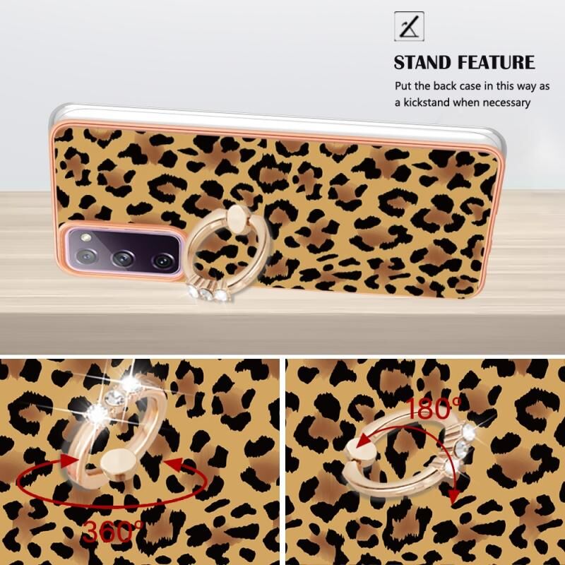Θήκη τηλεφώνου για Samsung Galaxy S20 FE με ηλεκτρολυτική επιμετάλλωση, διπλής όψης IMD με δακτύλιο στήριξης (εκτύπωση λεοπάρδαλης)
