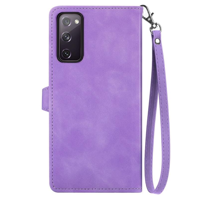 Για Samsung Galaxy S20 FE ανάγλυφο λουλούδι Shockproof δέρμα υπόθεση τηλεφώνου (μωβ)