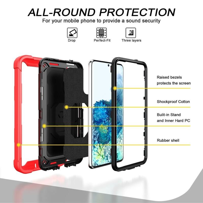 Για Samsung Galaxy S20 FE / FE 5G PC + καουτσούκ 3 στρώσεων Αδιάβροχη προστατευτική θήκη με περιστρεφόμενη θήκη (κόκκινο + μαύρο)
